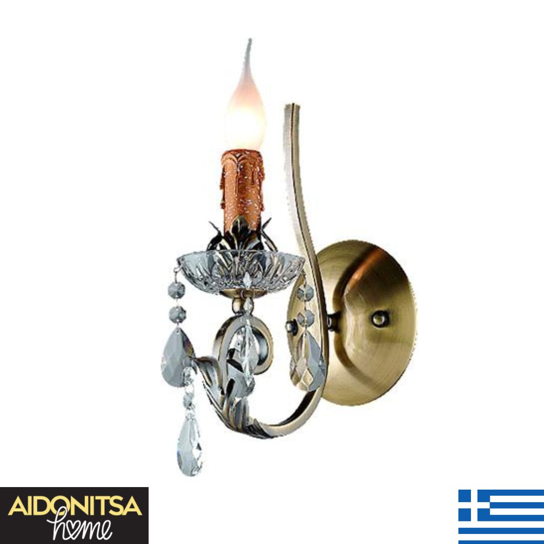 Abazhur Muri Bronx Kristal 11001 Me 1 Llampe E14 prodhuar në Greqi nga mjeshtra artizanë me eksperiencë shumë vjeçare nga materialet më cilësore, përveç ndriçimit do t’i japë hijeshi shtëpisë tuaj! Ai është bërë prej kristali cilësor Asfour dhe bronxi cilësor, me fije çeliku për lidhjen e kristaleve!