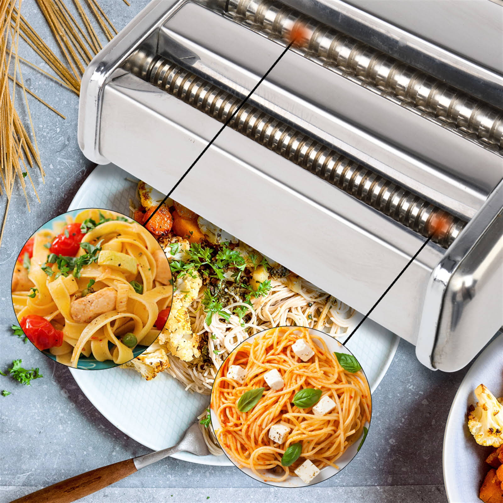 Ky prodhues autentik makaronash ju mundëson të bëni linguine, tagliatelle dhe petë të sheshta makaronash për ravioli dhe lazanja. Thjesht kalojeni brumin e makaronave midis dy cilindrave të parë, duke e rrotulluar dorezën. Sa herë që kaloni makaronat tuaja nëpër cilindra, mund të rregulloni me mekanizmin rrotullues anash, në mënyrë që fleta gradualisht të bëhet më e hollë. Pasi të keni arritur trashësinë e kërkuar, mund ta kaloni fletën e makaronave përmes dy cilindrave prerës. Kështu ju do të keni linguini, taljiatele, lazanja dhe ravioli të freskëta me përbërësit që zgjidhni vetë dhe pa aditivë!