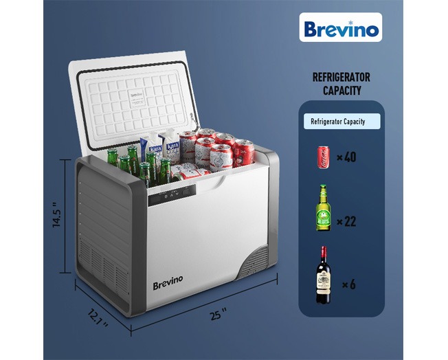 I projektuar me teknologji inteligjente, BPR-25 përfshin kontroll me prekje për rregullimin e temperaturës, ndriçim LED dhe sistem mbrojtjeje të baterisë. Ky frigorifer portabël BREVINO BPR-25 funksionon me tension 12V/24V për makina dhe gjithashtu 100–240V për përdorim në shtëpi, duke ofruar fleksibilitet maksimal.