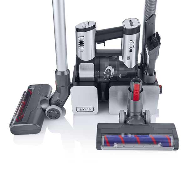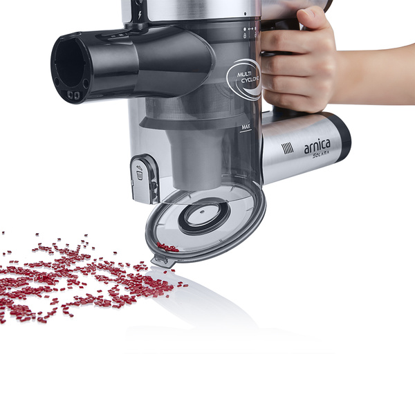 Fshese Me Karikim Multi Cyclone Arnica Solara është e pajisur me një tub teleskopik dhe stile të ndryshme të kokave të vakumit, duke lejuar që kjo fshesë me korrent të jetë shumëfunksionale.