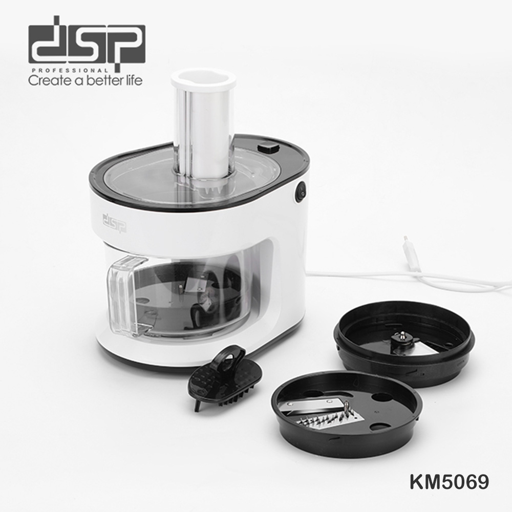 Grirëse & Prerëse 3-në-1 DSP KM5069 kryen katër funksione kryesore: prerje, grirje, copëtim dhe krijim spiralesh. Pakoja përfshin tre disqe thike, një disk për prerje në kubikë, një pajisje dicing dhe një shtytës ushqimi. Funksioni spiralizer krijon prerje të hollë për sallata, garnitura ose gatime kreative.