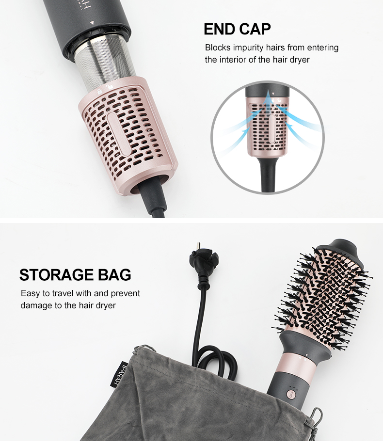 • Aksesore; 5 koka stilimi të këmbyeshme: *cilinder majtas dhe djathtas(2 fuçi) *Fryrese e përqendruar *Furçë e rrumbullakët 32mm *Furçë ovale 60mm *Furçë për drejtimin e flokëve