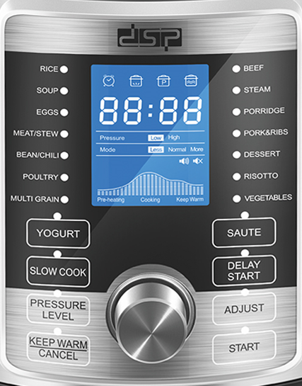 Me këtë pajisje ju mund të mbani ngrohtë në temperaturën e dëshiruar dhe mund të gatuani oriz për 8-16’, peshk për 5’, vezë për 5’, pjata në avull për 3-10’. Zierje të ngadalta dhe supa për 20-40’, mish për 12-30’, fasule për 30-50’, pjekje të ngadalta me presion minimal për 1-6 orë, pjekje të shpejta për 30-50’. Skuqje në temperaturën që ju doni për 15-35’, pjekje ëmbëlsirash për 30-50’. Koha e të gjitha programeve mund të ndryshojë nga 1-99 minuta.