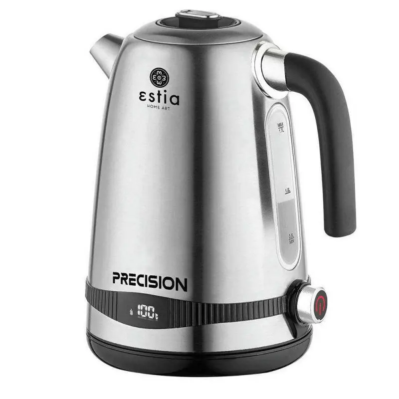 Ngrohese Uji Elektrike 1.7L 2200W ESTIAGR, modeli 10836 është bërë prej çeliku inox dhe ka një termostat me buton me prekje me opsione të vendosjes së temperaturës nga 40 deri në 100°C dhe një funksion të ngrohjes. Ekrani dixhital ju informon për temperaturën e ujit në modalitetin e pritjes. Ka një bazë rrotulluese 360° me hapësirë ruajtëse për kabllon. Ka një tregues të nivelit të ujit dhe një mekanizëm për mbyllje automatike.