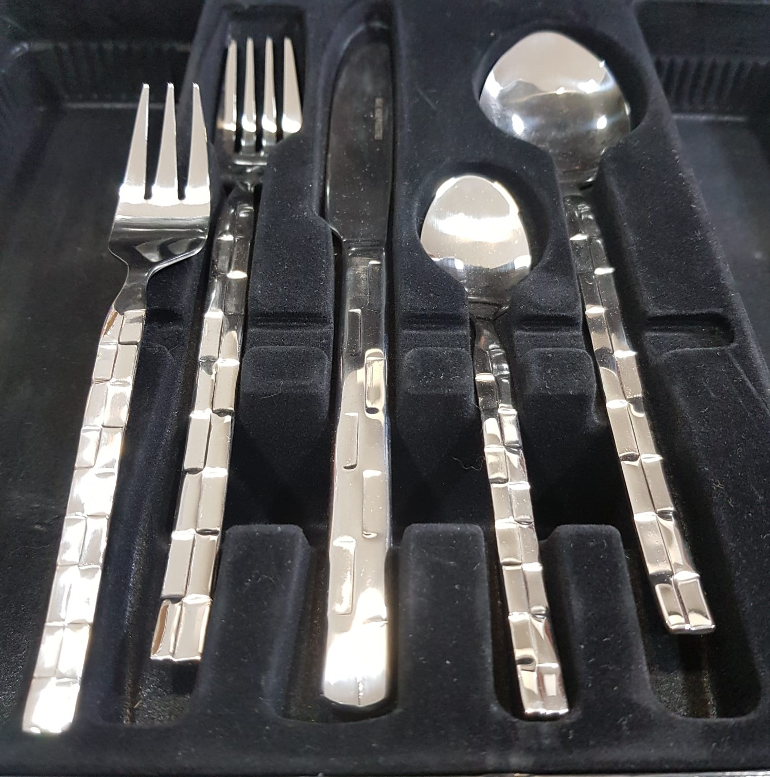 • Përmbajtja: 6 thika ngrënieje, 6 pirunë ngrënieje, 6 lugë ngrënieje, 6 pirunë ëmbëlsirash dhe 6 lugë ëmbëlsirash/çaji