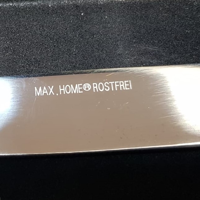 Set 30Cp Luge/Pirune/Thika Inoks Premium F980 MAX.HOME® është prodhuar prej inoksi cilësor ushqimor SAE 304 (18cr/10ni) . Kjo substancë përmban 18-20% krom, 08-10% nikel, 2% mangan, 1% silic, 0,08% karbon, 0,045% fosfor, 0,30% squfur dhe 68,85-72,85% hekur.