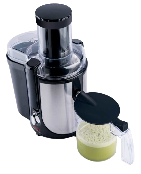 Produkti, i cili ka një hyrje elektrike 1200 W, është ndër shtrydhësit e lëngjeve shpesh të preferuar me hapjen e tij ushqyese tepër të gjerë prej 85 mm dhe tiparin e tij të shtypjes së frutave në tërësi.