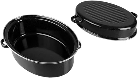 - Tavë ovale çeliku me buzë inoksi dhe kapak