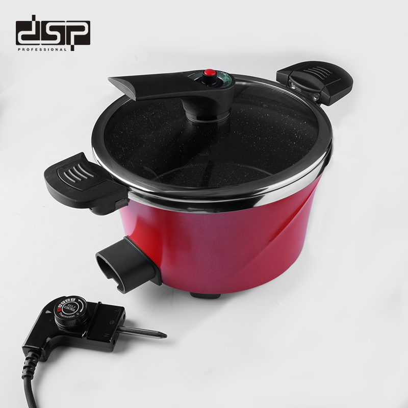 Tenxhere elektrike me presion te ulet ka funksionet e zierjes me avull, zierjes, skuqje dhe të tjera. Pamje elegante e produktit, e përsosur në performancë, e besueshme dhe e qëndrueshme. 1. Produkti ka karakteristikën e ngrohjes automatike, kur temperatura e brendshme arrin pikën e caktuar, ngrohja ndalon automatikisht, gjë që e bën funksionimin më të përshtatshëm. 2. Kontrolli i fuqisë së zjarrit me ane te celsit rrotullues, i lehtë për t’u përdorur. 3. Komponentët elektronikë me performancë të shkëlqyer janë të zgjedhura,