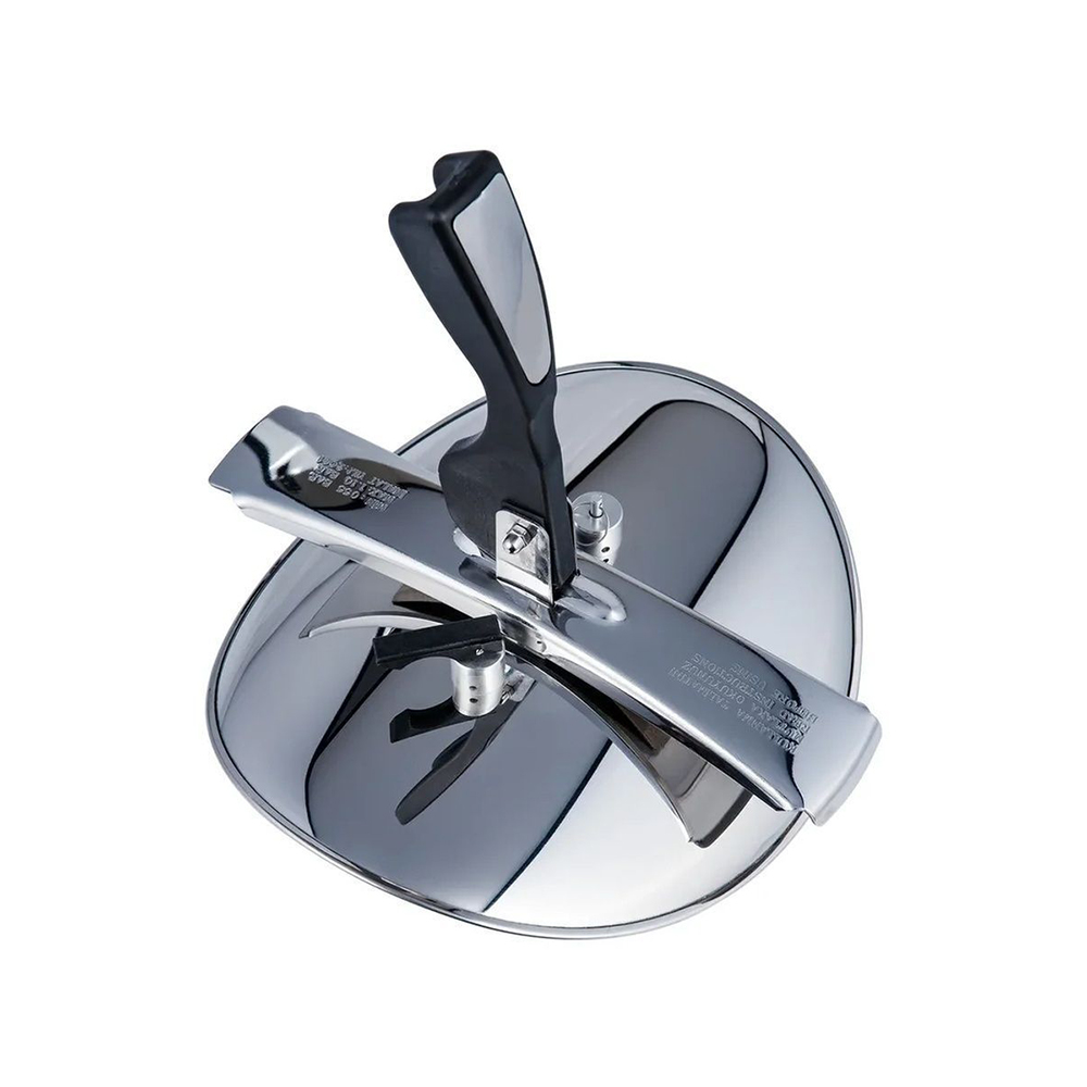 Hapja dhe mbyllja e kapakut bëhet vetëm me një lëvizje, duke e rrotulluar 90 gradë. Dorezat e tenxhereve janë prej inoksi të salduar me një teknologji që nuk lejon percjelljen e nxehtesise. Siperfaqja e jashtme i eshte nenshtruar procesit te shkëlqimit.