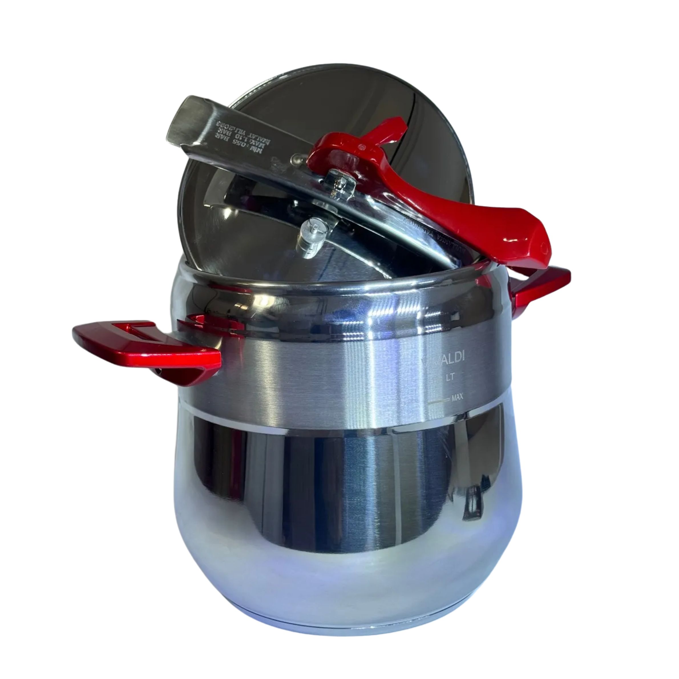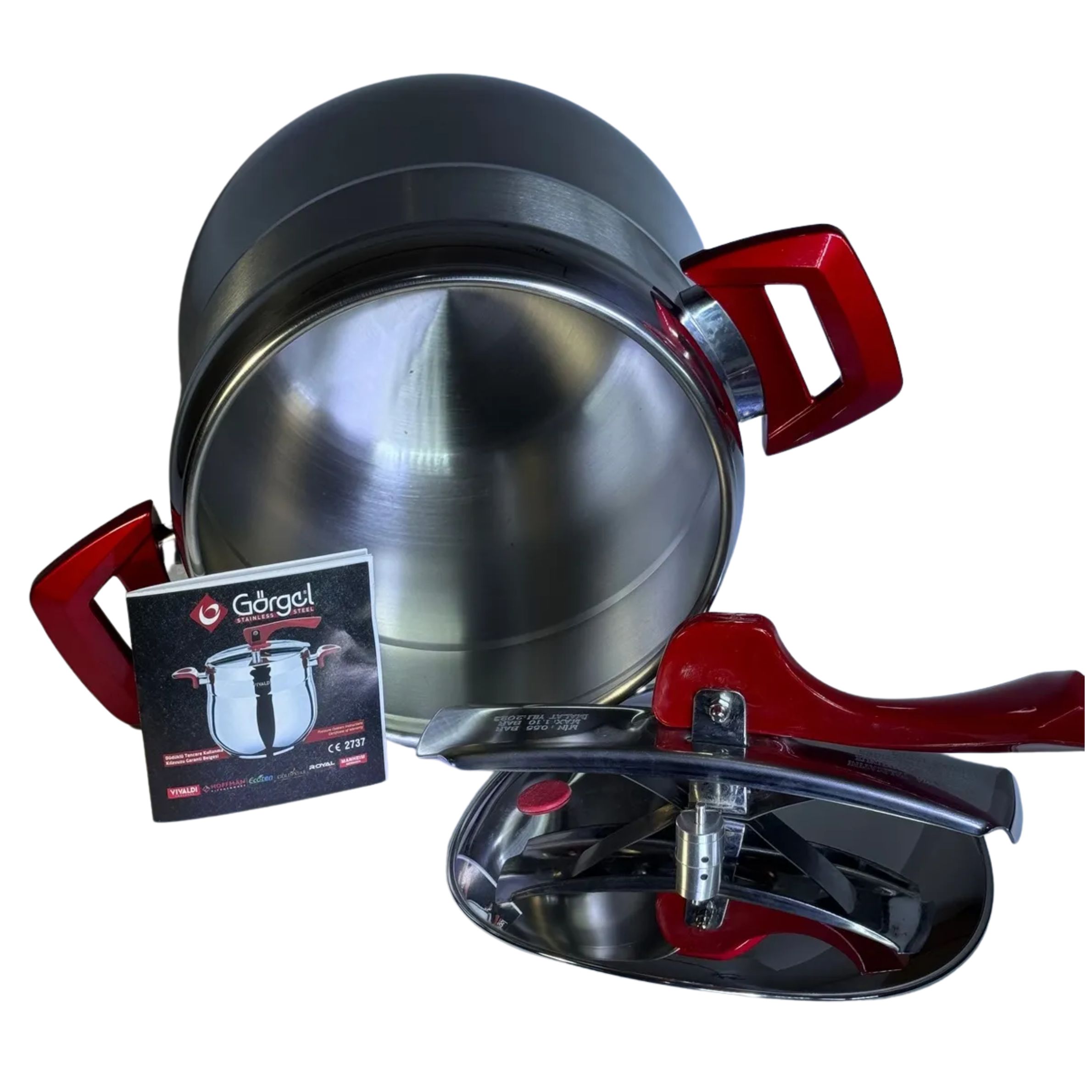 Tenxhere me presion Orkide 6L është zgjedhja ideale për gatime të shpejta, të shijshme dhe të shëndetshme. Me trup të ndërtuar nga çelik inox 18/10 Cr-Ni dhe kapak të sigurt me mbyllje të fortë, kjo tenxhere garanton gatim efikas me ruajtje maksimale të vlerave ushqimore.