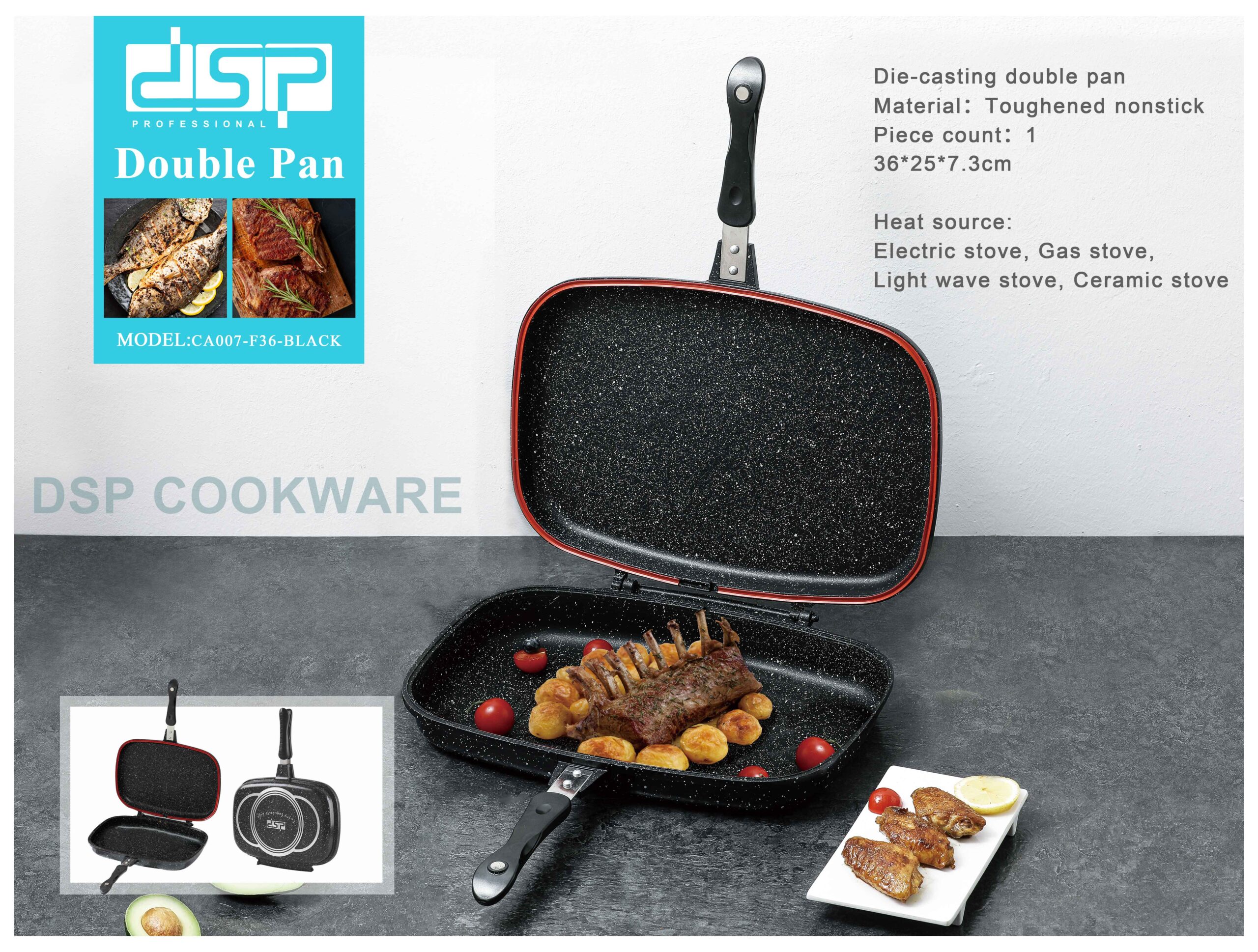 Tigan Dysh CA007-F36-Black është nga gama e re jo ngjitëse premium. Ajo është e bërë nga alumini i derdhur 4,5 mm i trashë për rezultat absolutisht solid, i përshtatshëm për zjarr, pjanur elektrike qeramik, infrared, halogjen. Dy tiganet bashkohen me anene e mje magneti te dorezat. Tigani vjen me dy guanicione silikoni.