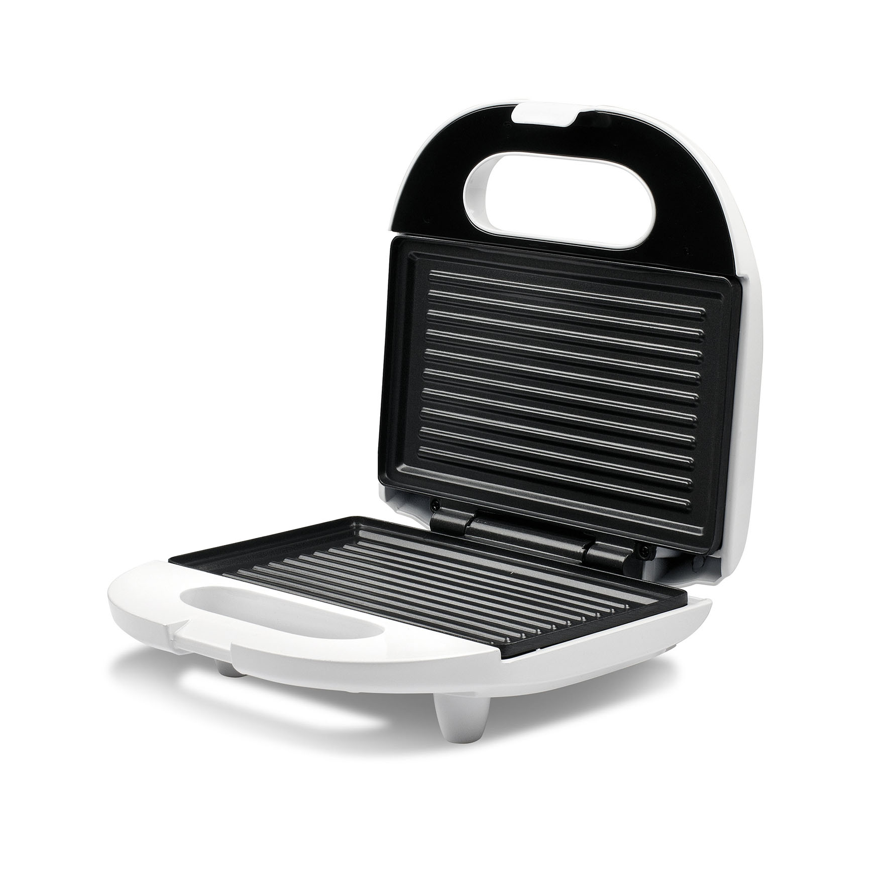 Maniglia me sistem mbylljeje siguron shtypje të qëndrueshme gjatë pjekjes. Dritat treguese ju informojnë për funksionimin dhe arritjen e temperaturës së duhur. Këmbët anti-rrëshqitëse e mbajnë pajisjen stabile në planin e kuzhinës.