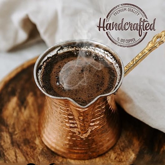Krijo kafe tradicionale turke me stil me këtë tenxhere kafeje prej bakri të punuar me dorë! E përkryer për të krijuar kafe të shijshme, autentike turke në komoditetin e shtëpisë tuaj!