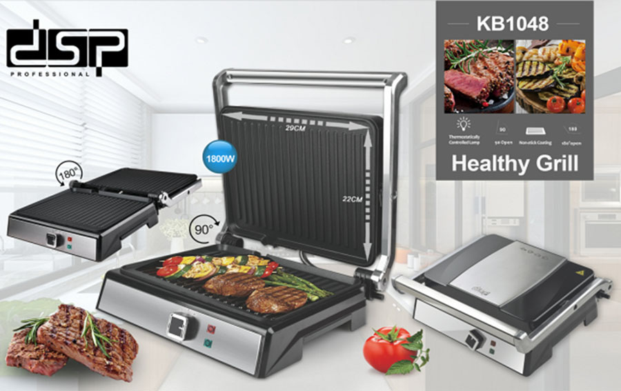 Zgare Tostiere 1800W KB1048 DSP Professional është një zgjedhje e mrekullueshme për ju që kërkoni një pjekëse elektrike ekonomike dhe praktike. Mund ta përdorni për të pjekur në skarë ushqime të tjera përveç tosteve dhe sanduiceve. Si p.sh mish, peshk dhe perime. Ka tregues të funksionimit dhe temperaturës. Ka një bazë që nuk rrëshqet. Ka pllaka të çmontueshme.
