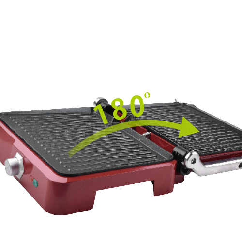 Zgare Tostiere 1800W KB1049A-Red DSP Profesional ka pllaka super cilësore me veshje që nuk ngjit, të cilat janë një zgjedhje e shkëlqyer për pjekje në skarë. Ato janë të lehta për t’u pastruar. Ka një dorezë anti-termike dhe një dritë të temperaturës së funksionimit. Kjo  me një veçori të veçantë, që mund të hapet horizontalisht në 180° dhe të kthehet në grill, ideale për pjekje.