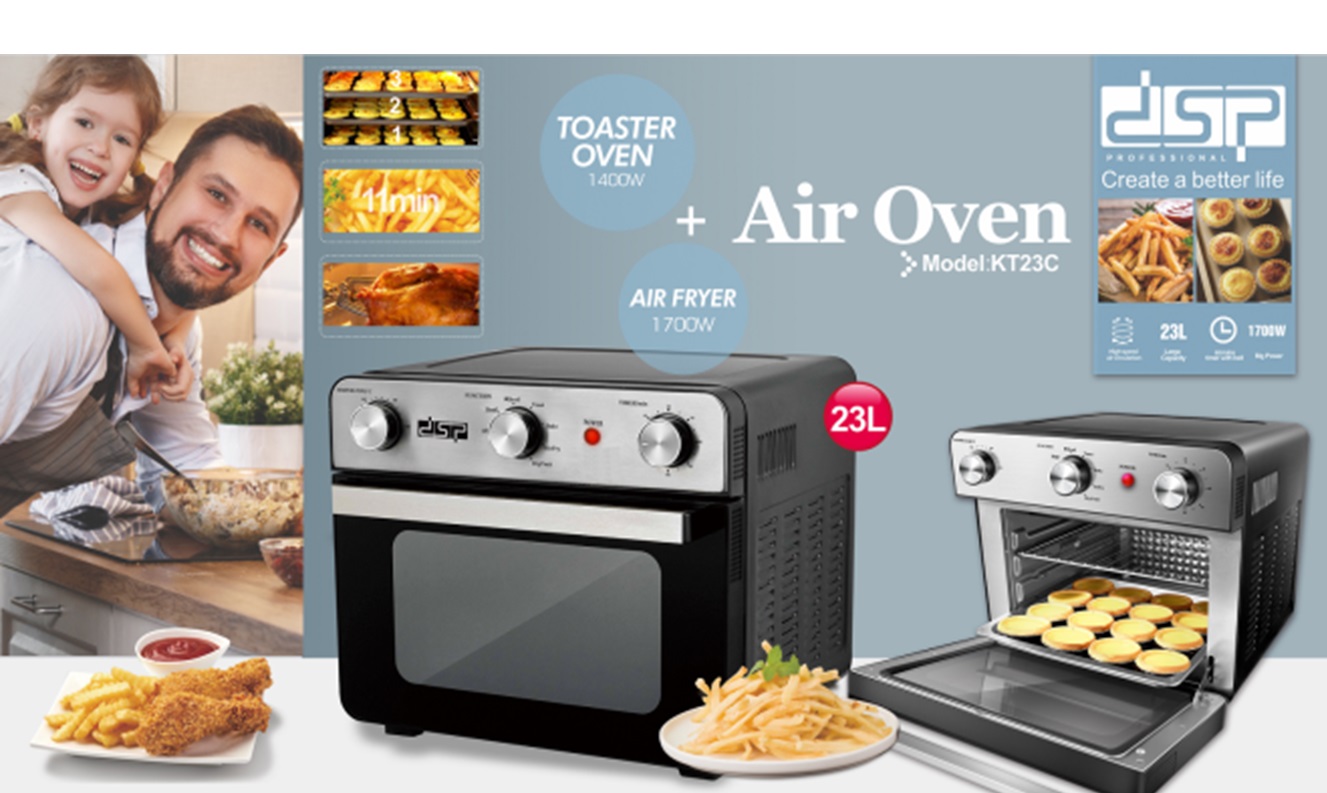 Air Fryer/Oven Fritezë me Ajër/Furrë 23L KT23C 2 në 1, mund të funksionojë duke ju përshtatur nevojave tuaja edhe si furrë e zakonshme , por edhe si fritezë pa vaj. Ajo do t’ju ndihmojë të gatuani duke ruajtur vlerat ushqimore, shijen dhe aromën.