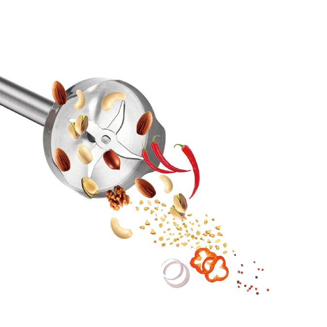 është një mjet i fuqishëm me fuqi 1000W dhe 2 tehe inox. Blenderi ka një dorezë ergonomike për përdorim të rehatshëm dhe kontroll të lehtë. Përveç kësaj, ofron pastrim të lehtë pas përdorimit, sepse mund të çmontohet dhe pastrohet lehtësisht. Me këtë blender mund të copëtoni dhe bëni pure perime, fruta dhe produkte edhe më të forta, si p.sh. akulli. Ju mund të krijoni smoothie-t tuaja të preferuara ose një slushie freskuese për t’u shijuar në një ditë të nxehtë vere. Në përgjithësi, ky blender jep performancë të fortë,