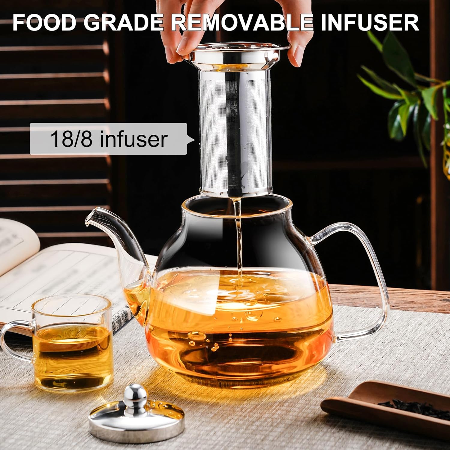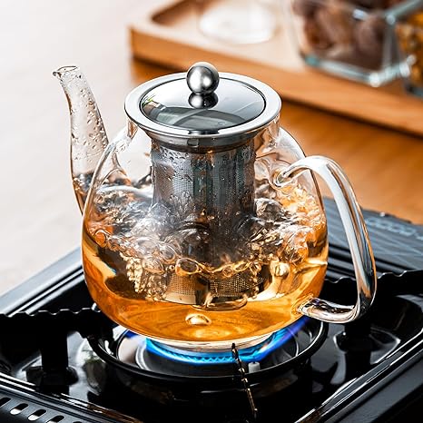 Xhami borosilikat i optimizuar i cilësisë së më të lartë siguron që çajniku të ketë fortësi dhe rezistencë ndaj nxehtësisë. Ai është në gjendje të përballojë ndryshimet e menjëhershme të temperaturës deri në 150℃. Sita speciale me inoks ushqimor SUS304 nxjerr çaj të përsosur dhe të kulluar, pa gjethe ose grimca të vogla që notojnë. Në mënyrë që të shijoni vërtet pijen, gjethet duhet të japin shijen, aromën dhe ngjyrën e tyre dhe të mos futen në filxhan.