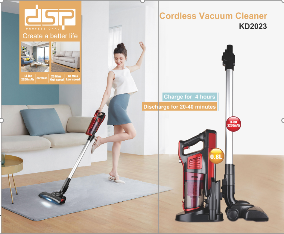 Fshese me Karikim KD2023 DSP Professional do t’ju ofrojë rehati dhe fleksibilitet absolut! Fshese me Karikim KD2023 DSP Professional është një fshesë me korrent me cilësi të lartë dhe me teknologji të avancuar. Ajo ka një fuqi thithëse konstante gjatë punës, falë baterisë së fuqishme litium me 2000 mAh. Edhe kur bateria është në gjysmën e kapacitetit të saj, do të keni performancë të lartë nga fshesa juaj me korrent. Është ideal për të gjitha llojet e dyshemeve.