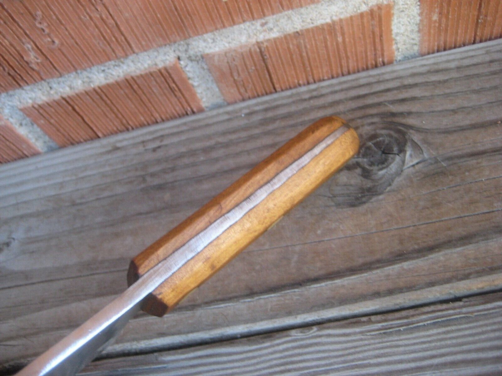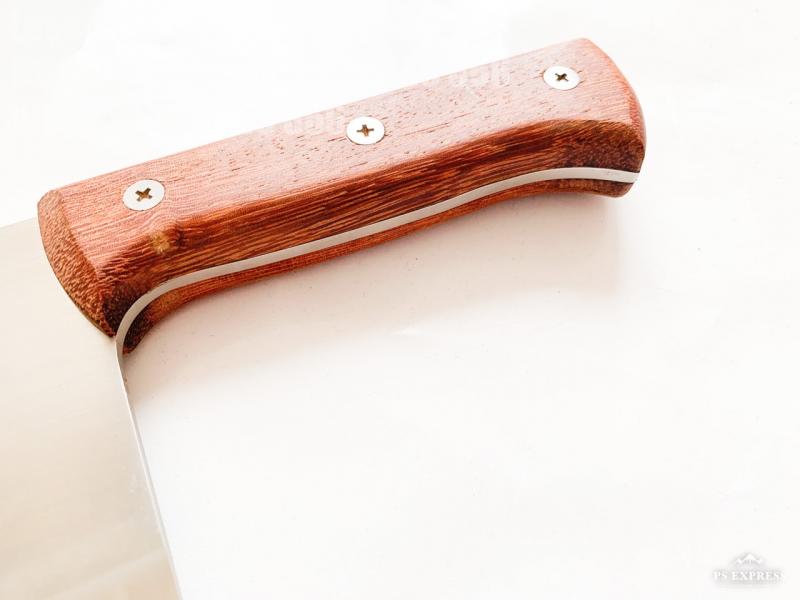 Ky hanxhar kasapi mishi dhe kockash me dorezë druri është bërë prej çeliku inox të qëndrueshëm me detaje të plota në të gjithë dorezën ergonomike të drurit të stazhionuar. Kjo dorezë është e mbërthyer me perçina.