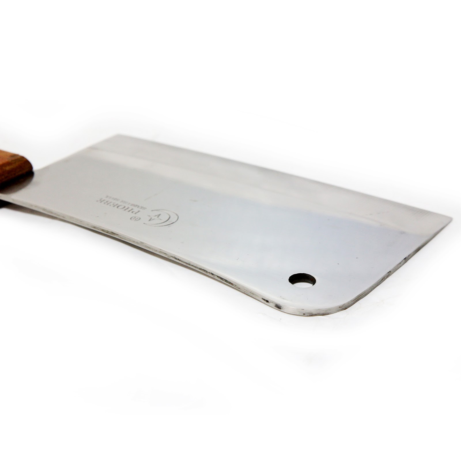 Ky hanxhar kasapi mishi dhe kockash me dorezë druri është bërë prej çeliku inox të qëndrueshëm me detaje të plota në të gjithë dorezën ergonomike të drurit të stazhionuar. Kjo dorezë është e mbërthyer me perçina.