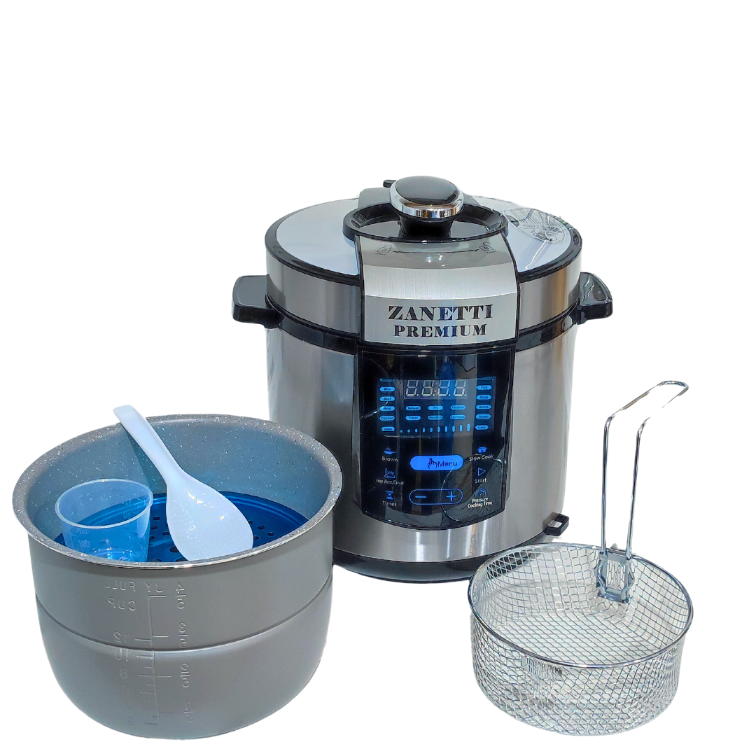 Multicooker/Multikuker ZANETTI PRO 6L 1000W është një riafirmim i standartit të lartë që Zanetti ka vendosur prej vitesh, përsa i përket prodhimit të multicooker/multikukerave. Ai sjell pranë konsumatorit shqiptar cilësinë, shijen dhe estetikën e pakrahasueshme italiane.