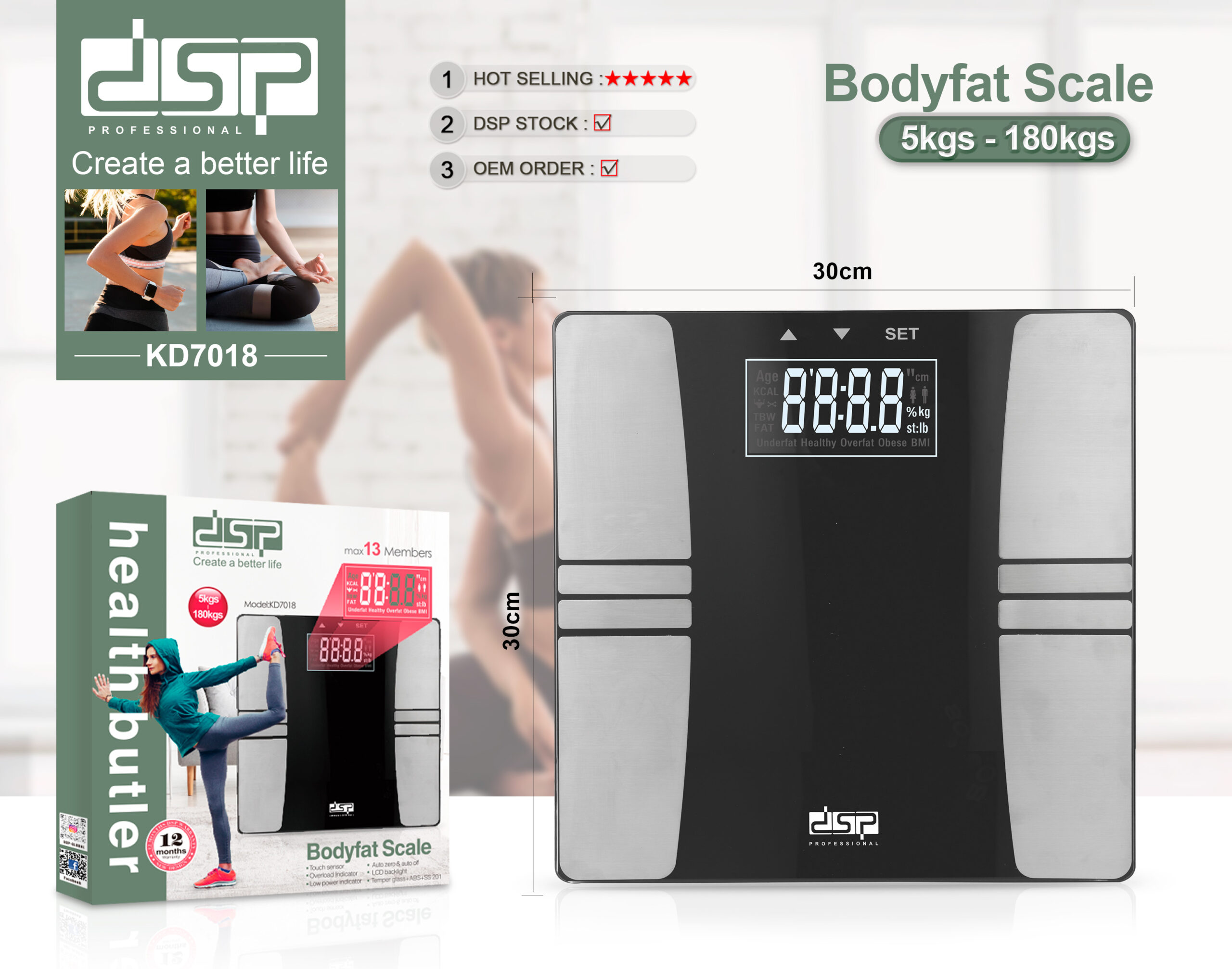 Peshore elektronike DSProffesional 180Kg Me te cilen matni trupin: peshën, ujin, yndyrën, muskujt, kockat, Kcal, BMI rregjistroni deri 13 persona
