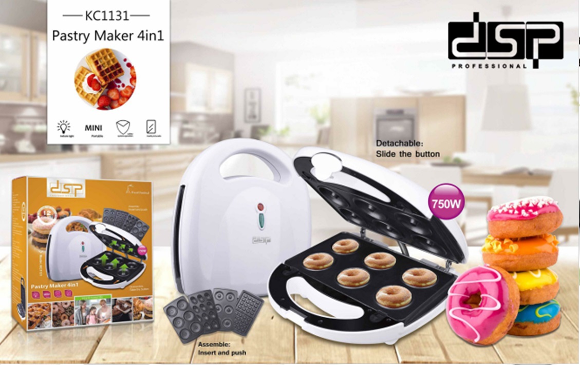 Pjekese Biskotash/Petullash/Vaflash 4ne1 750W KC1131 DSP Professional do t’ju ndihmojë të përsosni shijen e embëlsirave tuaja të preferuara! Ky është një prodhues vaflash/biskotash dhe petullash i lehtë për t’u përdorur. Ai ka 4 pllaka të dyfishta që të mund të piqni dy vafla ose shumë biskota në të njëjtën kohë.