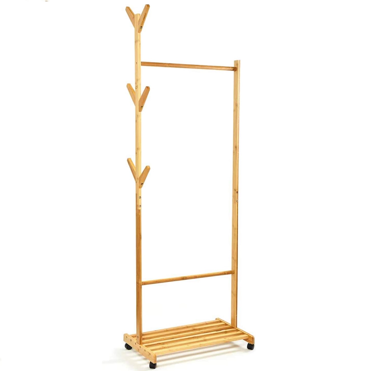 Raft Shumefunksional/Portmanto Bambu DK7716 mund të përdoret gjithashtu si raft shumëfunksional. Rafti i poshtëm i rëndë mund të ruajë këpucët, vazot tuaja. Bimët e varura mund të varen nga shufra e sipërme. Ai ka 6 grepa mund të përdoren për të varur çanta, kapele, çadra etj