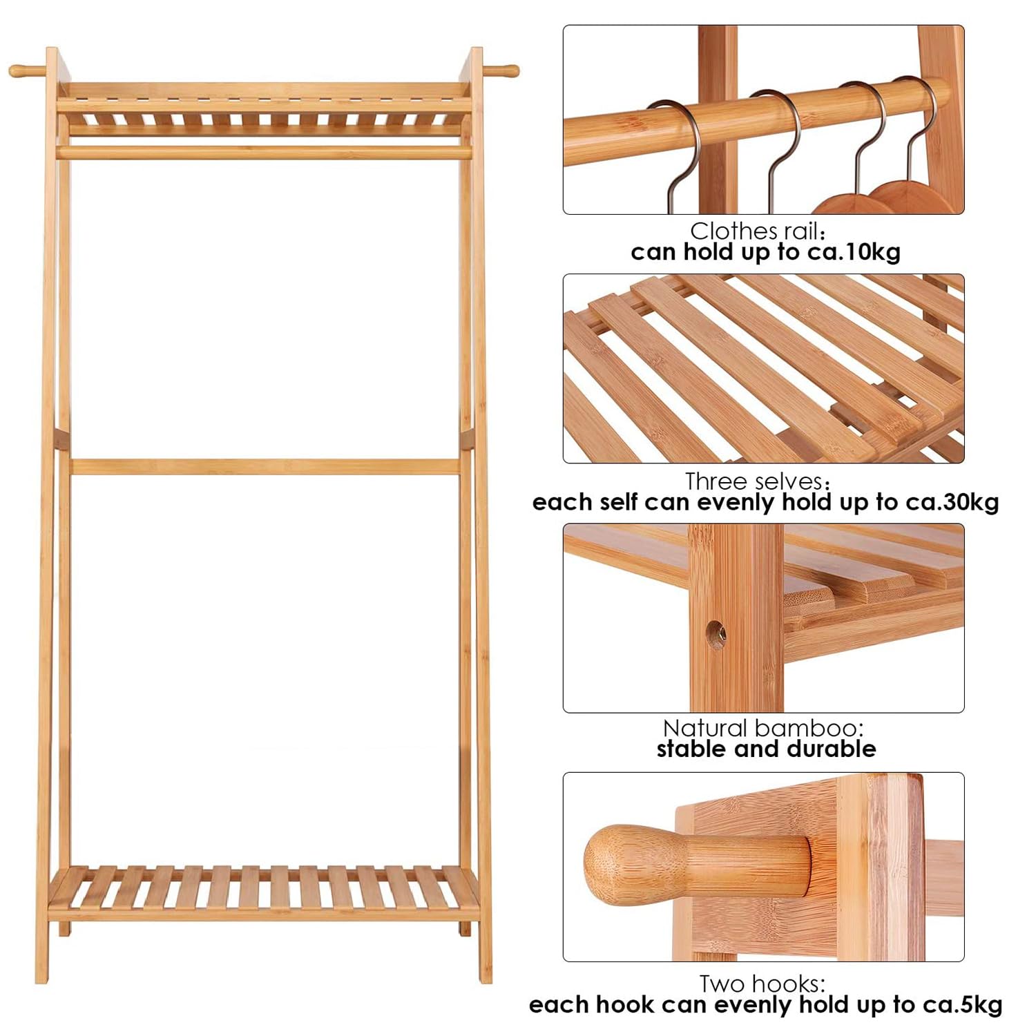 Raft Shumefunksional/Portmanto Bambu DK7719 është i pajisur me 1 shufër sipër, 2 grepa dhe raft ruajtjeje me 2 nivele për t’ju dhënë më shumë mundësi. Mund të përdoret në korridor, dhomë gjumi, sallon, ballkon, zyrë dhe dyqan, sipas dëshirës tuaj.