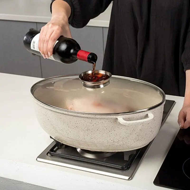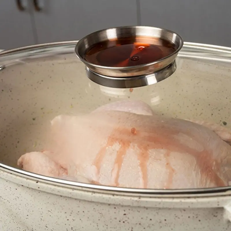 Tapa e kapakut mund të mbushet me lëng i cili pikon ngadalë brenda tavës dhe kjo nuk lejon asnjëherë që gatimi të thahet.