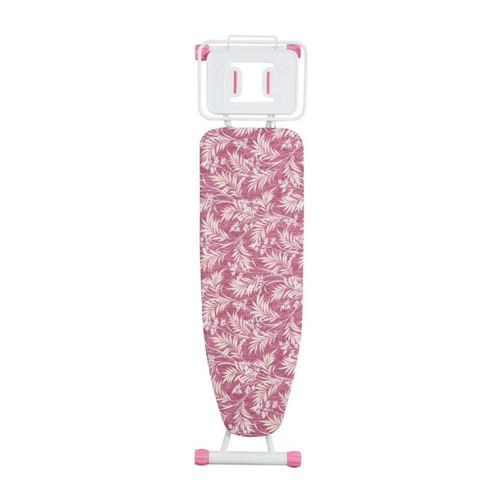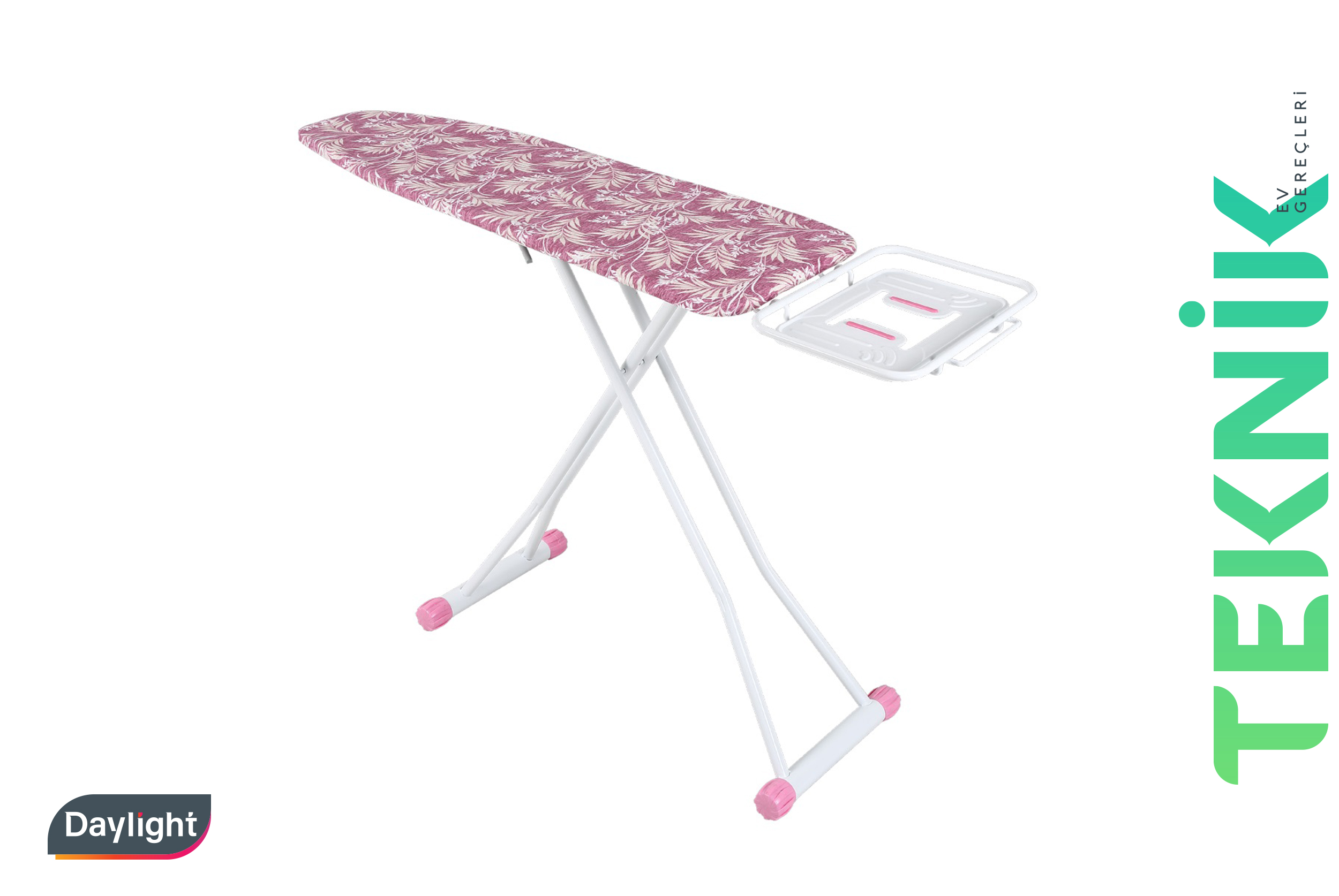 Dërrasa e hekurosjes është monoblok çeliku i presuar dhe i përforcuar, duke garantuar stabilitet gjatë përdorimit dhe jetëgjatësi të lartë. Sipërfaqja është e mbuluar me pëlhurë pambuku shumëngjyrëshe dhe rezistente ndaj nxehtësisë, që i jep një pamje të freskët dhe ruan sigurinë edhe gjatë përdorimit të zgjatur.